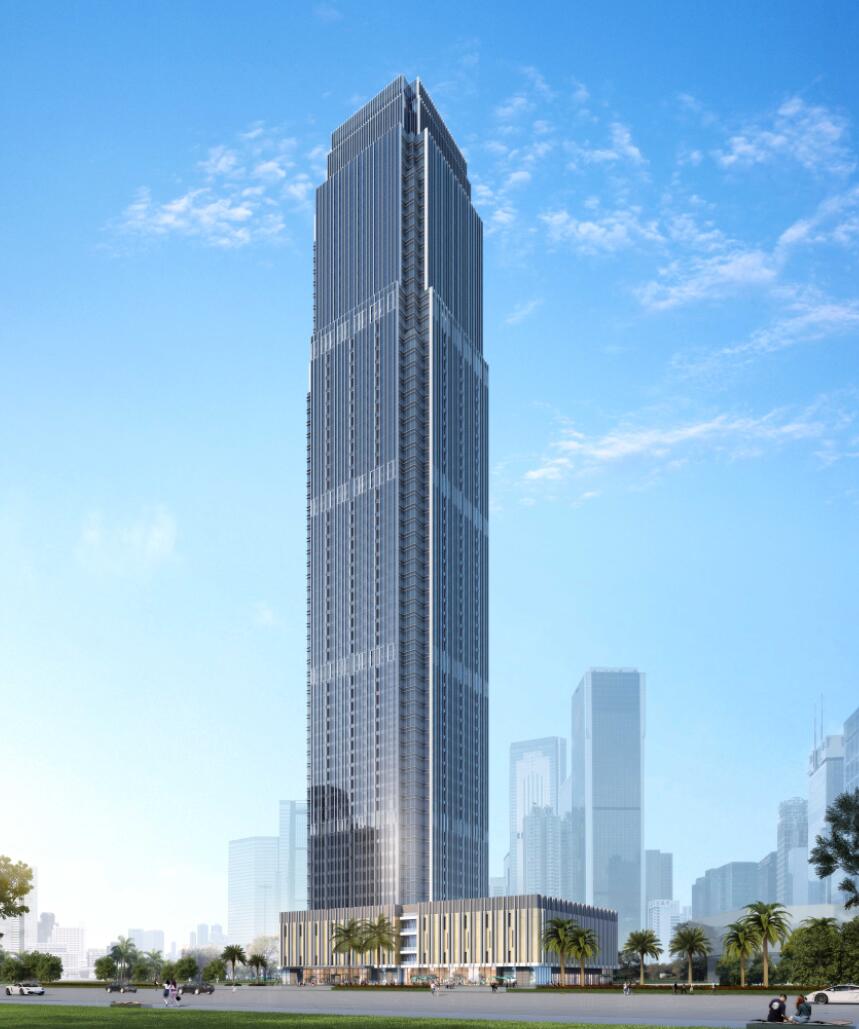 項目位于防城港市江山大道與金花茶大道交匯處,是一棟大型商業(yè)、辦公、酒店綜合體,總建筑面積超過17萬㎡,建筑高度達到271米,地上70層,是防城港市最高樓。