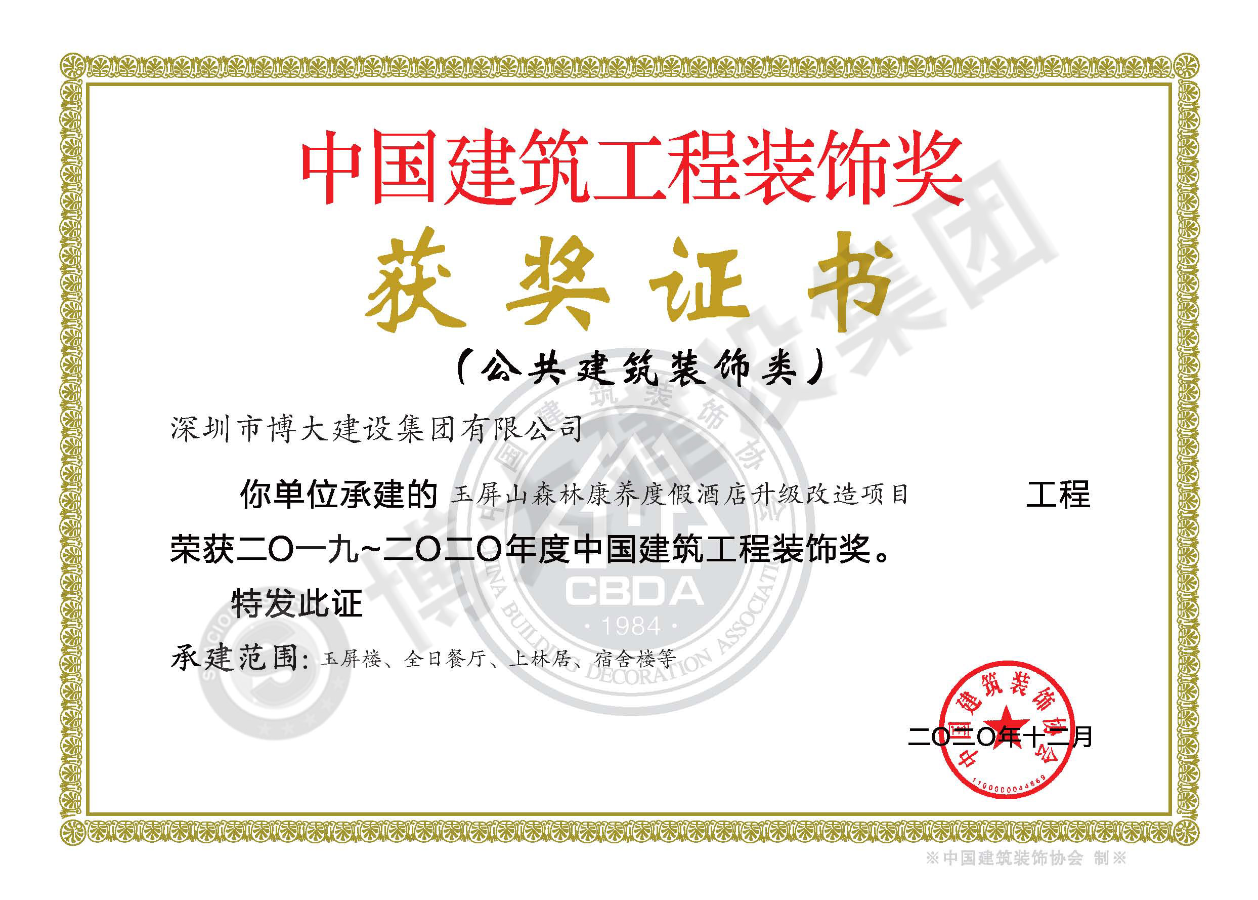 中國建筑工程裝飾獎(四川玉屏山康養(yǎng)度假酒店裝飾施工)