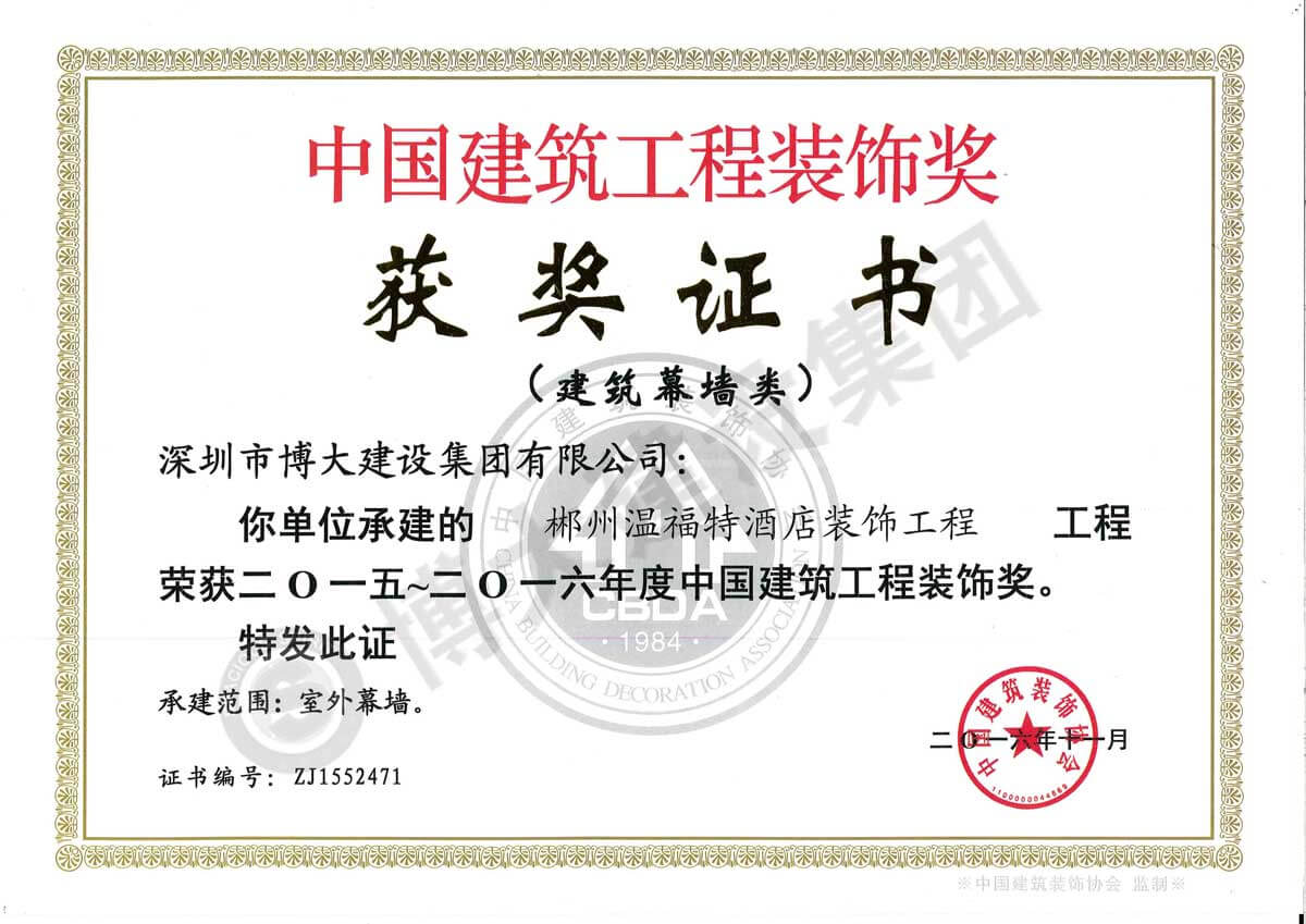 中國建筑工程裝飾獎(jiǎng)(郴州溫福特酒店-幕墻)
