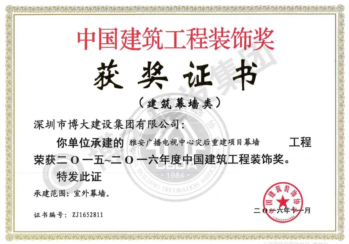 中國建筑工程裝飾獎(jiǎng)(雅安廣播電視中心災(zāi)后重建項(xiàng)目-幕墻)