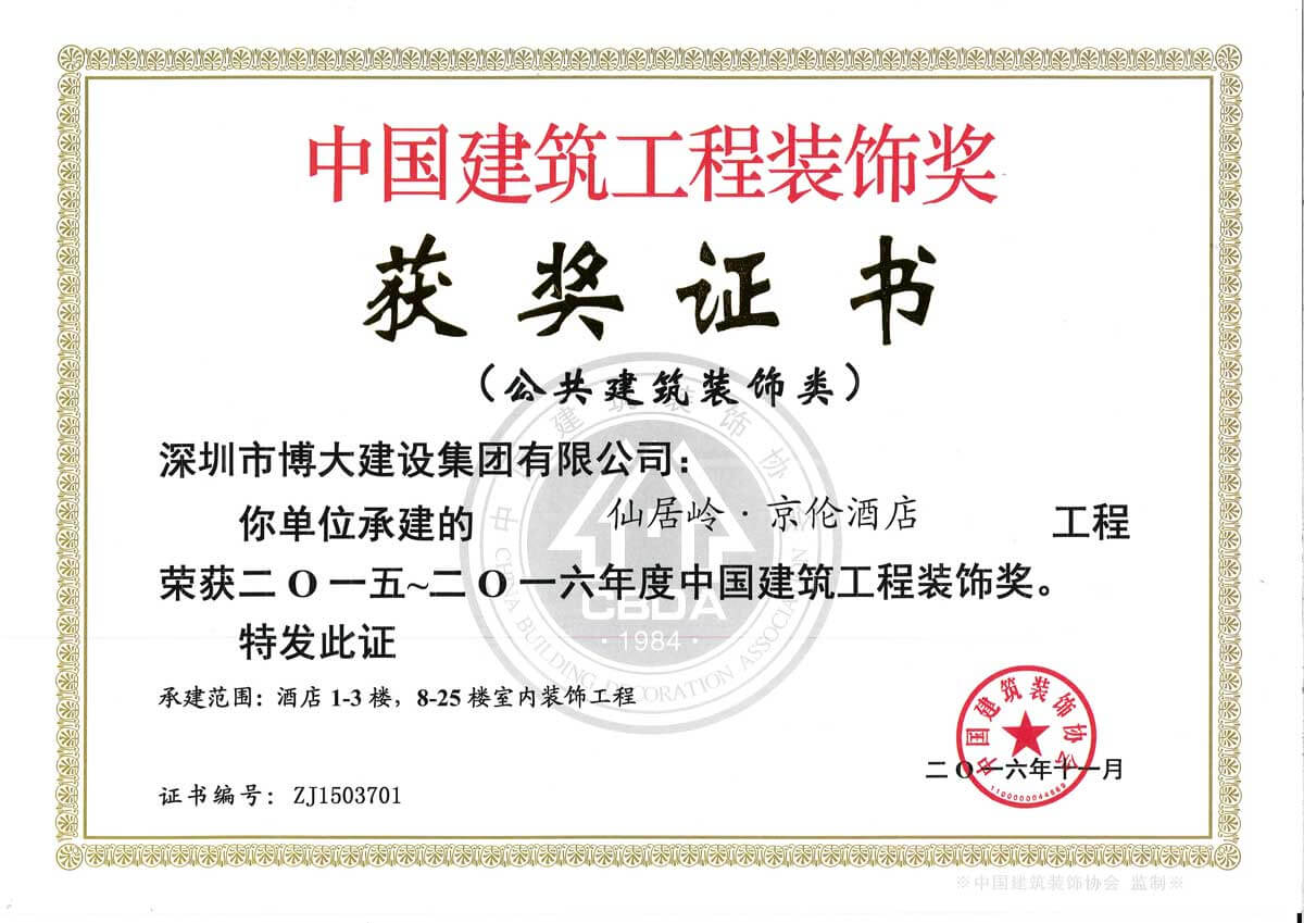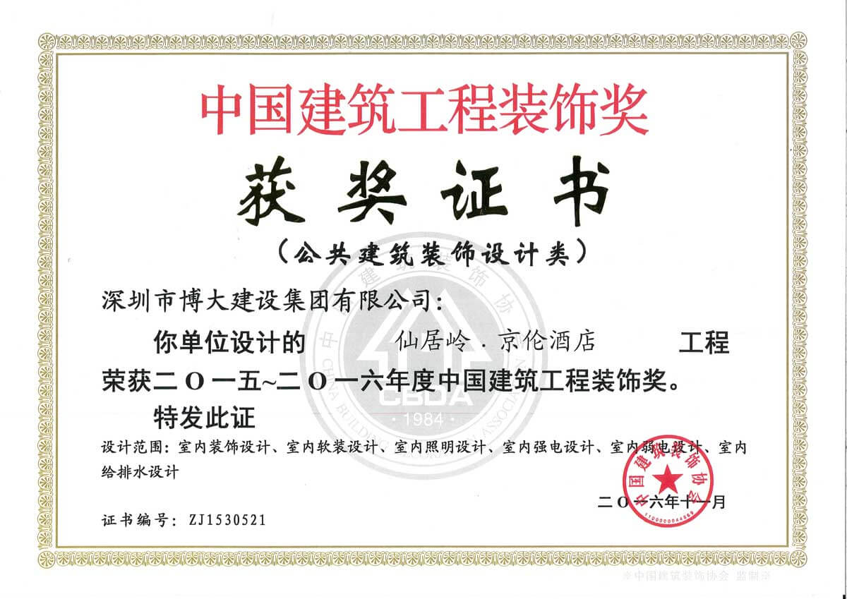 中國建筑工程裝飾獎(jiǎng)(仙居嶺.京倫酒店-設(shè)計(jì))