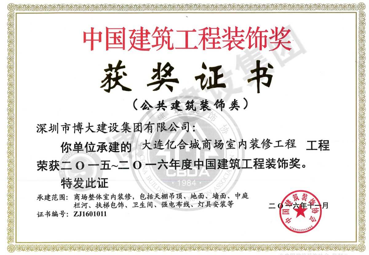 中國建筑工程裝飾獎(jiǎng)(大連億合城商場(chǎng)室內(nèi)裝修工程-裝飾)