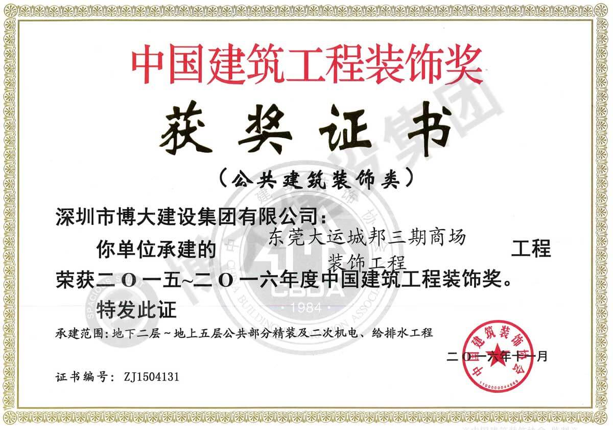 中國建筑工程裝飾獎(jiǎng)(東莞大運(yùn)城邦三期商場(chǎng)-裝飾)