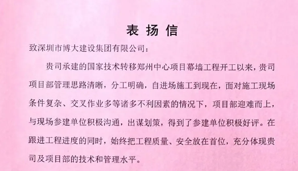 博大榮譽 | 以優(yōu)質(zhì)履約贏得三方表揚