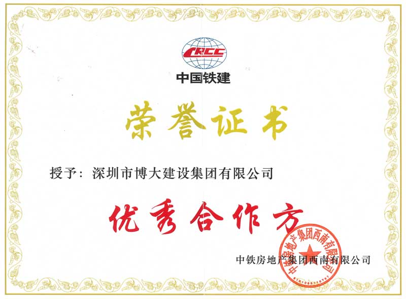 博大建設(shè)集團作為中國鐵建的長期合作伙伴,已連續(xù)數(shù)年榮獲“優(yōu)秀合作方”稱號。
