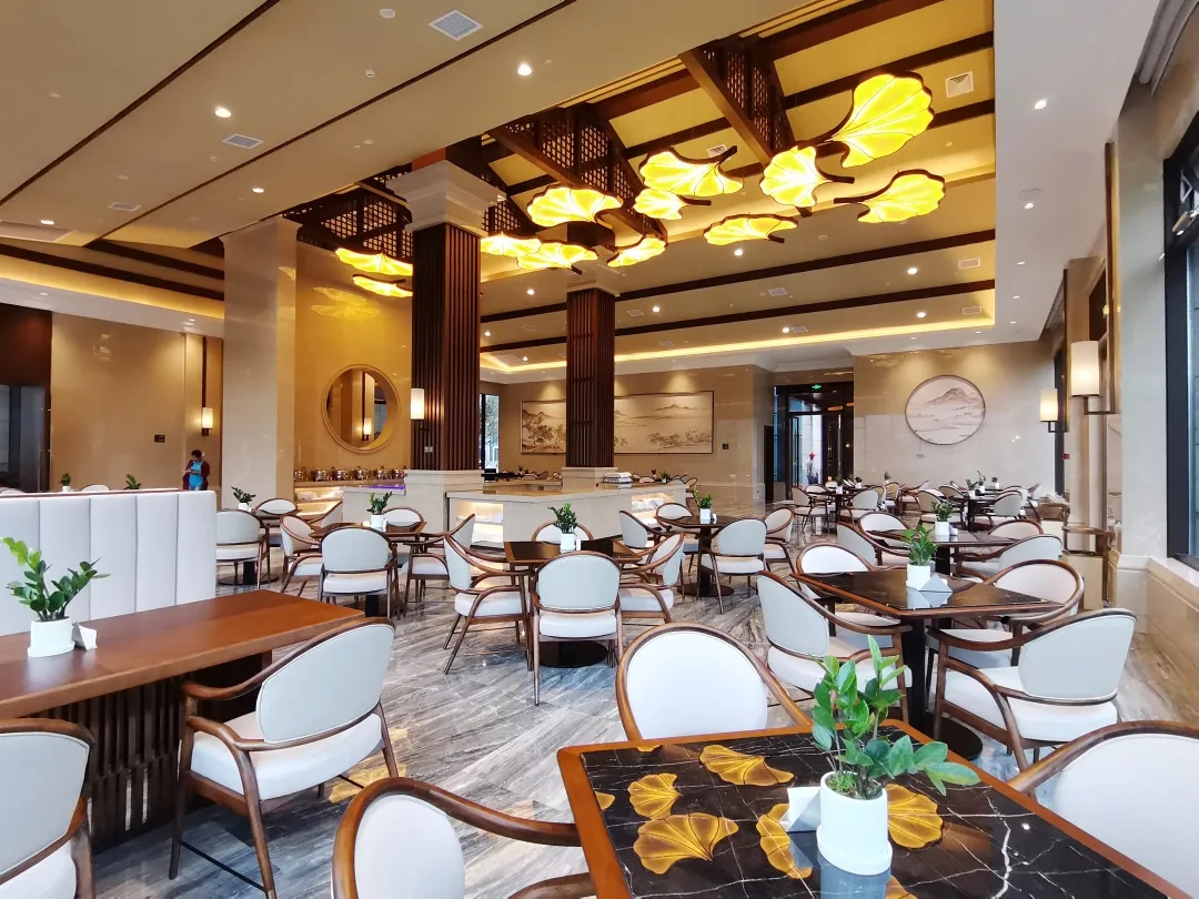 通透的全日制早餐廳,為客人帶來愜意的用餐時光。捫布硬包質(zhì)感素雅,晶瑩剔透的大理石地面及布菲臺,打造此現(xiàn)代明快的用餐空間。