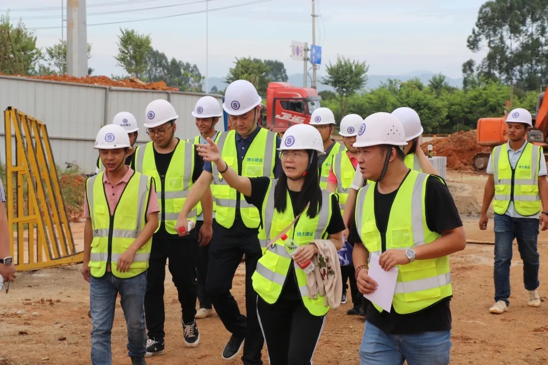 圖丨集團(tuán)副董事長黃河(后排右五)、廣西分公司總經(jīng)理李培陽(后排右四)視察項(xiàng)目