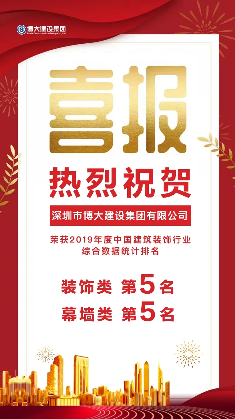 熱烈祝賀博大躍居中國建筑裝飾行業(yè)百強第五名!