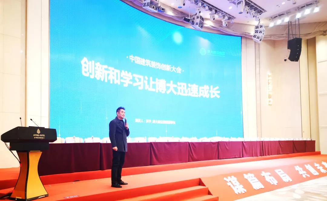 “創(chuàng)新和學習讓博大迅速成長。今天,我主要從三個方面為大家分享:管理模式創(chuàng)新,建立了利益共享的合伙人機制;文化創(chuàng)新,打造正能量的企業(yè)文化;持續(xù)學習,不斷地掌握和運用新的策略、工具和方法?!辈┐蟪蔀楸敬稳珖袠I(yè)排名發(fā)布大會唯一一家建筑裝飾企業(yè)上臺分享發(fā)展經(jīng)驗。董事長洪宇的精彩演講引起現(xiàn)場企業(yè)家的熱烈反響。