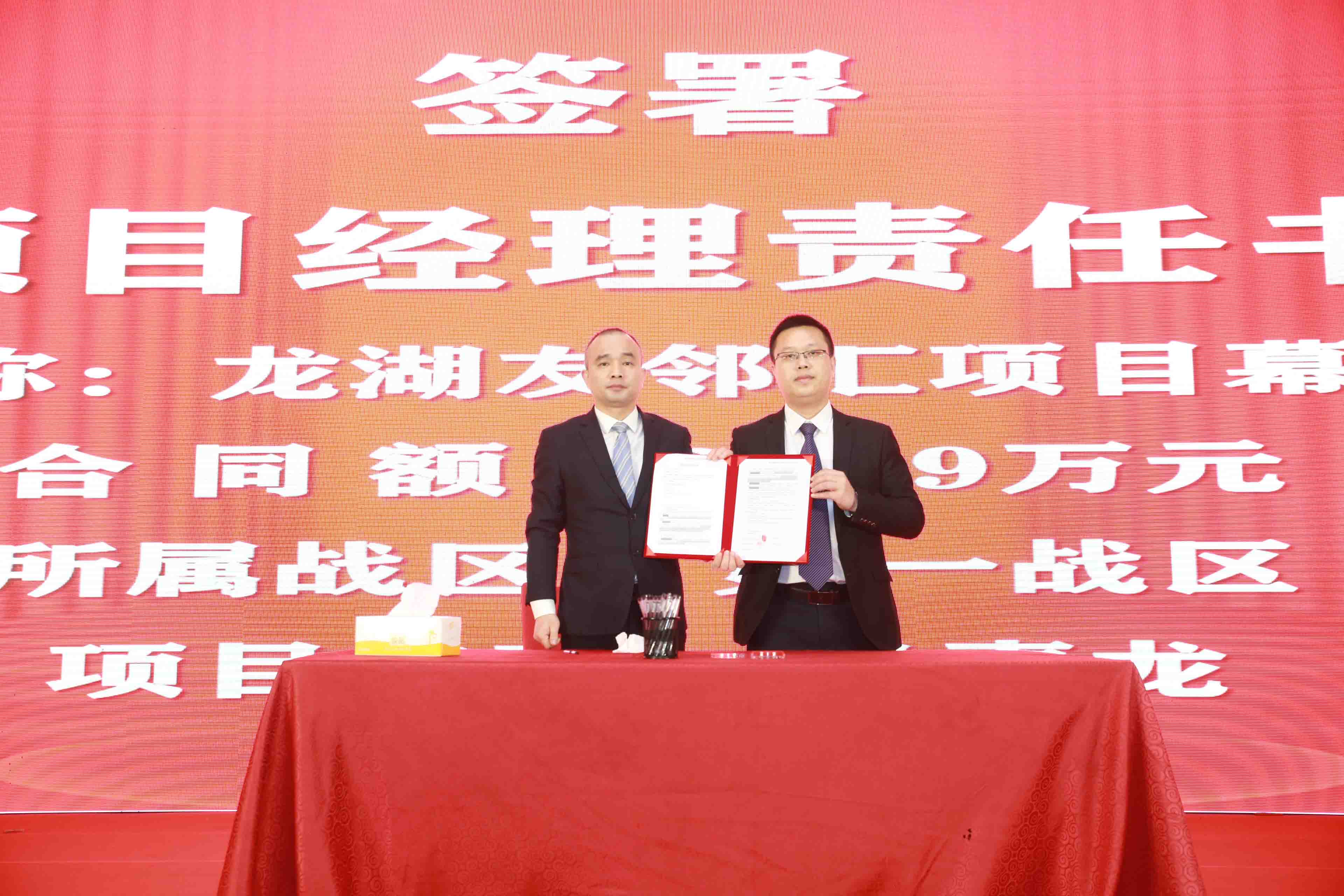 百舸爭(zhēng)流千帆競(jìng),莊嚴(yán)宣誓奮者先。2021年項(xiàng)目經(jīng)理簽約儀式、目標(biāo)宣誓大會(huì)現(xiàn)場(chǎng)莊嚴(yán)神圣,20位項(xiàng)目負(fù)責(zé)人作為集團(tuán)新開工項(xiàng)目代表與工程管理中心總經(jīng)理何學(xué)軍、副總經(jīng)理徐朝華簽訂《項(xiàng)目經(jīng)理責(zé)任書》,強(qiáng)化履約主體責(zé)任。