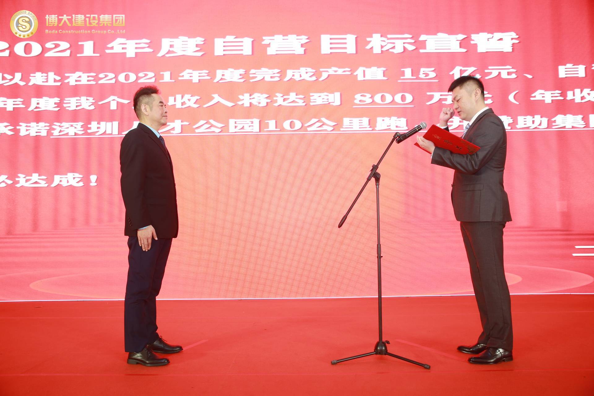 開局即決戰(zhàn),起步即沖刺。博大建設(shè)集團(tuán)于2月24日晚隆重召開2020年優(yōu)秀表彰大會(huì)暨2021年目標(biāo)宣誓大會(huì),博大將士吹響攻堅(jiān)決勝“沖鋒號(hào)”!創(chuàng)始人徐凱宏、董事長(zhǎng)洪宇、副董事長(zhǎng)黃河、總裁李朕鴻、常務(wù)副總裁沈雁飛等董事會(huì)領(lǐng)導(dǎo)盛裝出席,與來自全國各地的400余名員工共同見證充滿正能量的年度盛典!