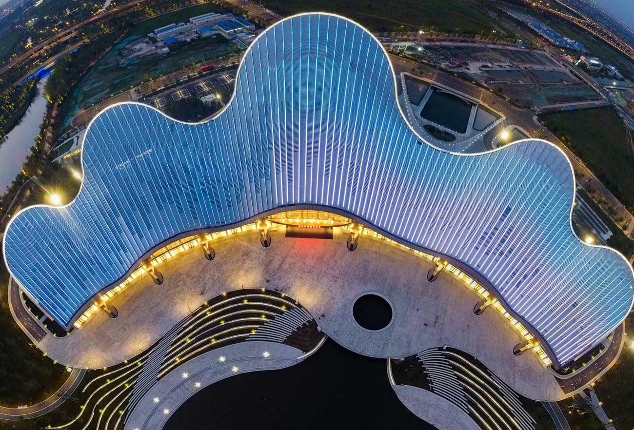 花開紫瑯,藝見南通。南通大劇院矗立在紫瑯湖畔,形似一架協(xié)奏的鋼琴,博大建設(shè)集團(tuán)負(fù)責(zé)劇院屋面幕墻系統(tǒng)、沿湖面幕墻系統(tǒng)、沿街面幕墻系統(tǒng)的施工任務(wù),幕墻及屋面總面積達(dá)到8.5萬㎡,在博大鐵軍的精心雕琢下,完美呈現(xiàn)了“琴山珠水”的設(shè)計(jì)理念。