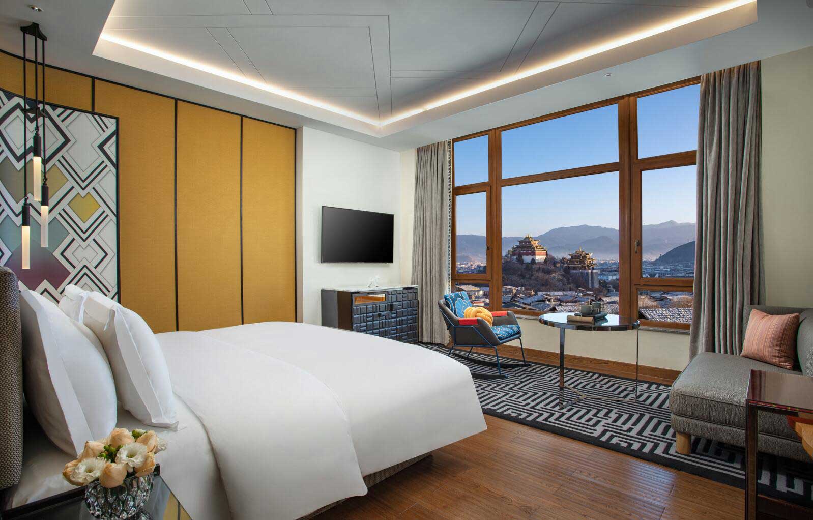 房間設(shè)計(jì)從藏地文化中汲取靈感,寫意回溯香格里拉鄰間故事,打造兼具民族風(fēng)韻和現(xiàn)代舒適的下榻空間,點(diǎn)綴精挑細(xì)選的工藝品及特色壁畫,房間的角落和細(xì)節(jié)處處可見充滿本地風(fēng)情的鄰間文化。開窗見景,入室賞藝,高品質(zhì)客房設(shè)施營(yíng)造了引人入勝的旅居氛圍。