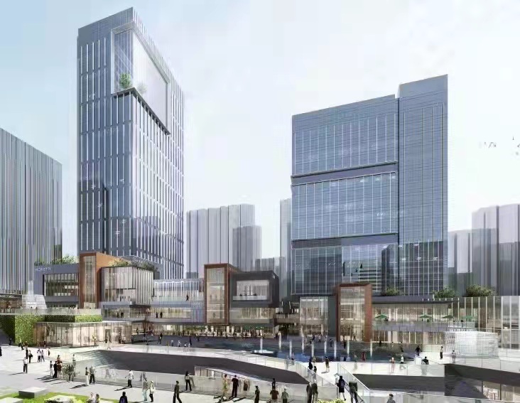 項目位于重慶市渝北區(qū)兩江國際商務中心,設計理念源于山城劇場的概念,將商業(yè)打造成開放式的街區(qū)。博大負責1號樓、2號樓、商業(yè)裙樓的幕墻施工,幕墻系統(tǒng)包含框架式玻璃幕墻、夾具式玻璃幕墻、鋁板幕墻、玻璃雨篷等。
